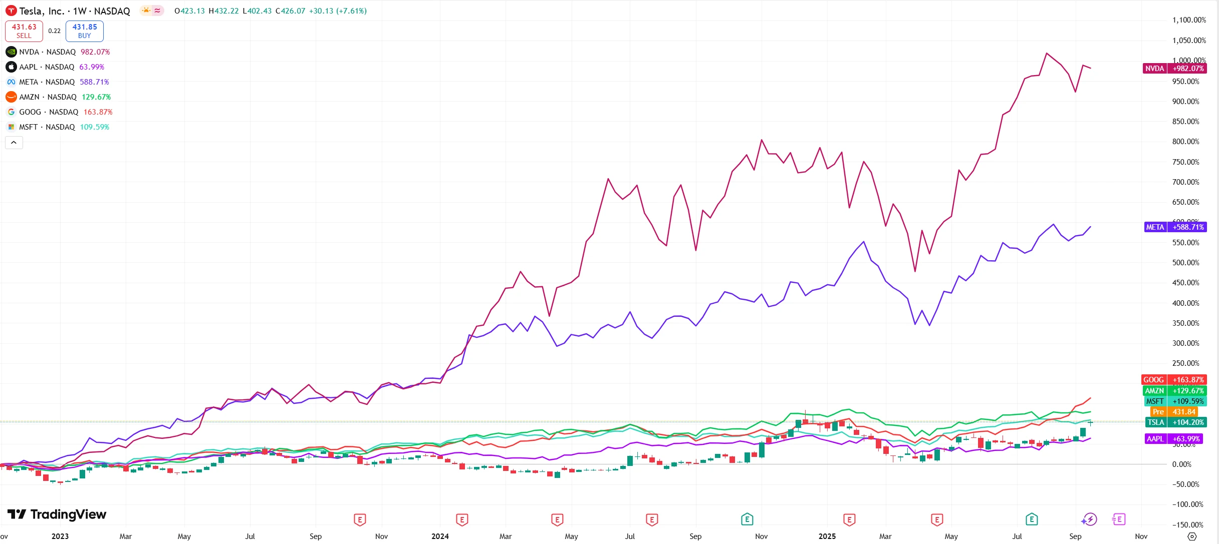 除了貨幣政策寬鬆,人工智慧熱潮成為美股上漲的重要推手。美國銀行的研究顯示,自2023年3月低點以來,「美股七巨頭」——特斯拉、Alphabet、蘋果、Meta、亞馬遜、微軟與英偉達——累計上漲223%,接近歷史上典型資產泡沫從谷底到頂峰平均244%的水平。這顯示科技股雖存在估值爭議,但尚未觸及泡沫破裂的臨界點。
