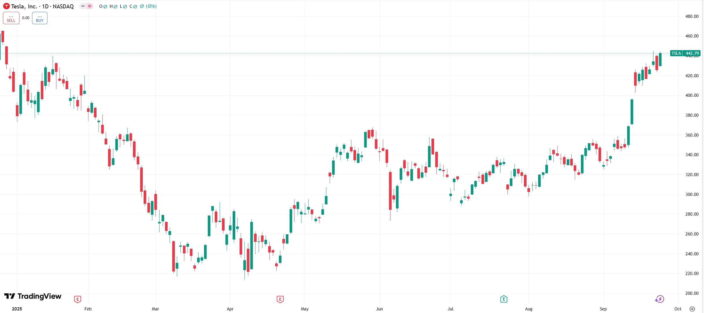 2025年截至目前,特斯拉(TSLA)的股價延續了穩健上漲態勢。儘管自2024年末起,因全球供應鏈壓力與宏觀經濟不確定性,股價曾持續下跌,但如今特斯拉股價仍實現兩位數成長,股價重回430美元上方,目前市值約為1.44兆美元。在這種背景下,投資人開始重新關注這隻股票的未來成長潛力。