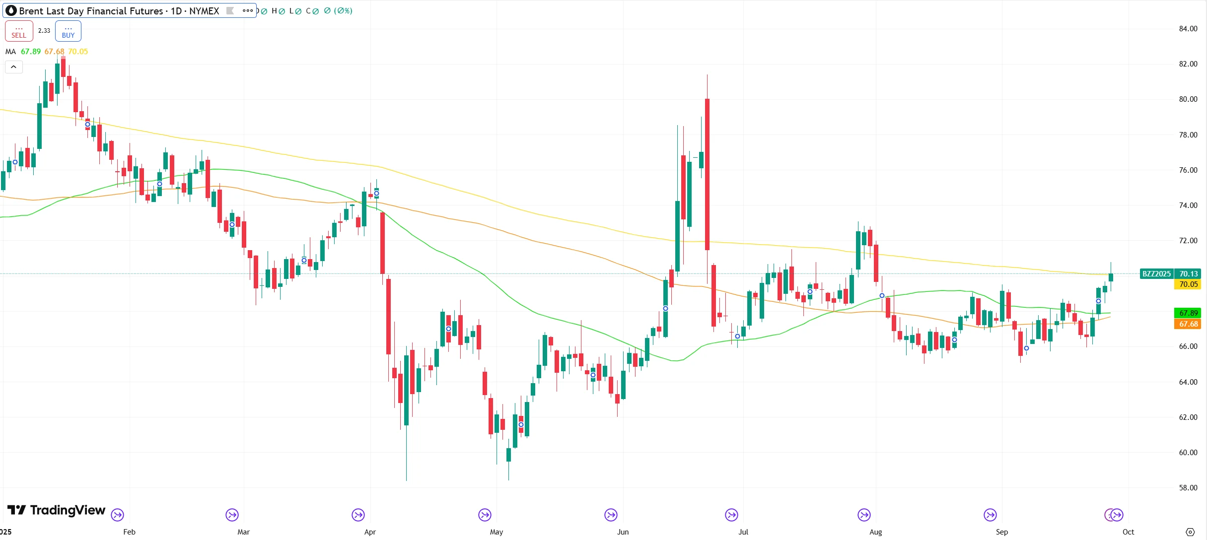 隨著地緣政治壓力加劇,市場對俄羅斯供應受限的擔憂升溫,推動全球基準布蘭特原油價格自7月下旬以來首次收於每桶70美元上方,地緣政治因素再度成為擾動原油市場的主導力量。