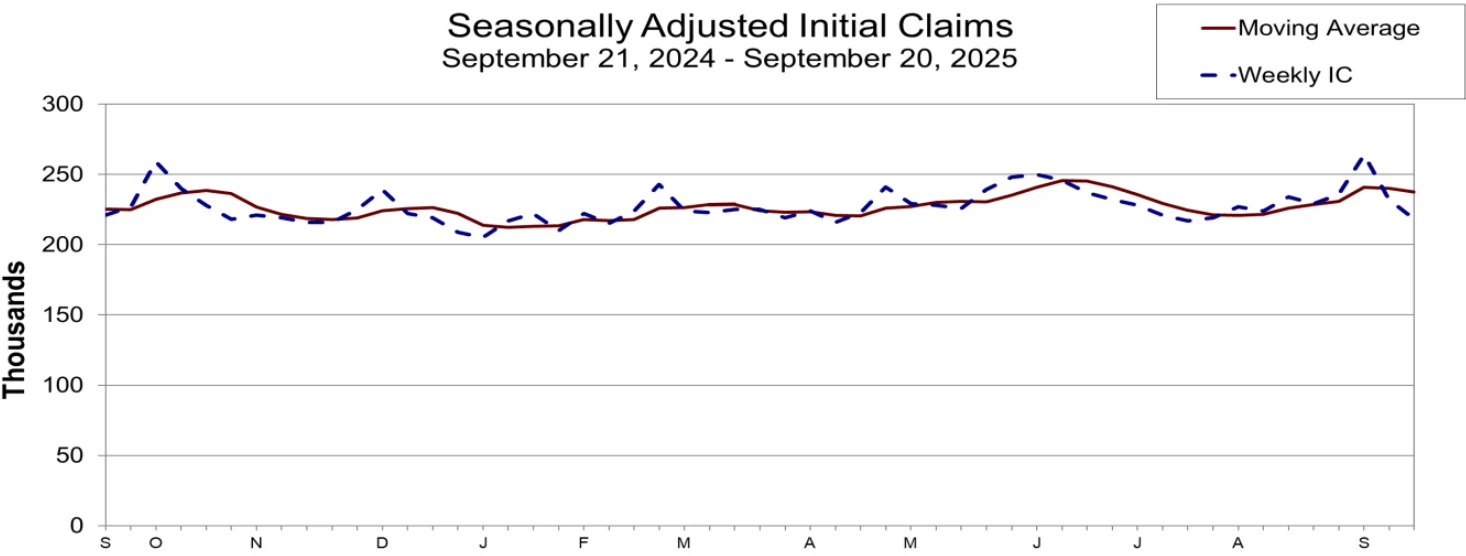 此外,截至9月20日當週,經季節調整後的初請失業金人數為21.8萬,為7月中旬以來的最低水平,與前一周向上修正後的數值相比減少了1.4萬,同時也大幅低於經濟學家預測的23.5萬。該數據的下一次公佈時間為10月2日(週四)。