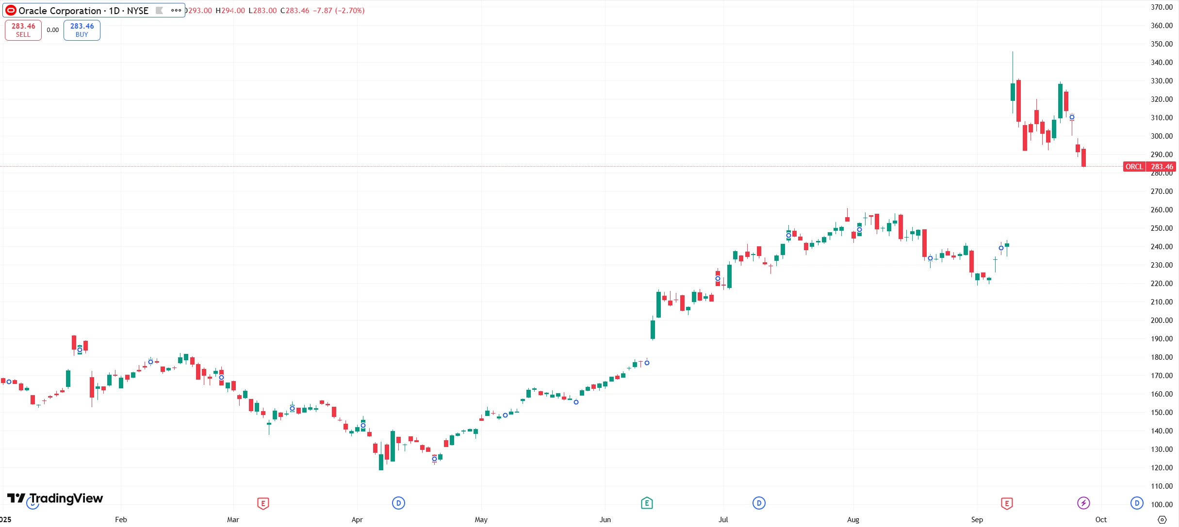甲骨文是上週表現異常的個股之一,受市場對AI交易熱潮持續性的疑慮影響,其股價連續走低。週四甲骨文下跌超5%,較近期高點已下跌近16%,全週跌幅為8.16 %。
