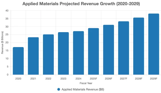 我們預測,到2029財年,應用材料的年複合銷售額成長率將達到7%。我們預期中期成長強勁,部分原因是晶片製造商為滿足人工智慧需求而大力擴張產能。此後,我們預計中期成長率將達到中高個位數。我們預計中期成長將由晶片製造商更先進的晶片設計推動,這些晶片製造商依賴應用材料的設備來生產全柵電晶體、小晶片設計和高頻寬記憶體等技術。應用材料的系統銷售週期性最強,其服務業務相當穩定,這有助於抵消營收的一些週期性影響。我們預計這項服務收入流的年增長率將超過我們的預測,達到兩位數。