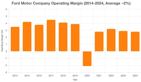 週期性和低利潤率已經提過。過去十年,福特的平均營業利益率僅為2%。一旦經濟情勢惡化,這將使其股息面臨風險。換句話說,如果福特在面臨財務困境時突然削減股息以節省現金,投資者也不應該感到驚訝。