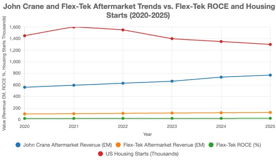 儘管Flex-Tek 受益於售後市場收入,尤其是在航空航太和某些工業領域,但這並非其強大的經濟護城河來源。與John Crane 不同,後者擁有與其已安裝設備直接相關的高利潤、經常性服務收入,而Flex-Tek 的售後市場銷售源於透過原始設備製造商(OEM) 和分銷商關係產生的持續替換需求,而非獨家服務合約或嵌入式設備佈局。其營運模式更像是「營運和維修」模式,這種模式提供了寶貴的收入,但不會造成同等程度的轉換成本或客戶鎖定。