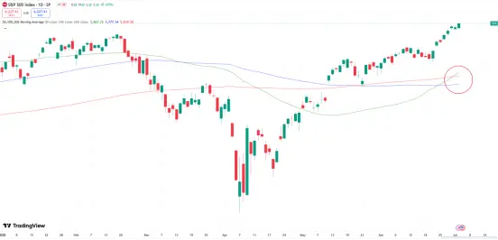 2025年下半年伊始,美國股市迎來技術分析領域的重要訊號。標普500指數於本週二(7月1日)形成了2023年2月以來首次「黃金交叉」-即50日移動平均線上穿200日移動平均線。