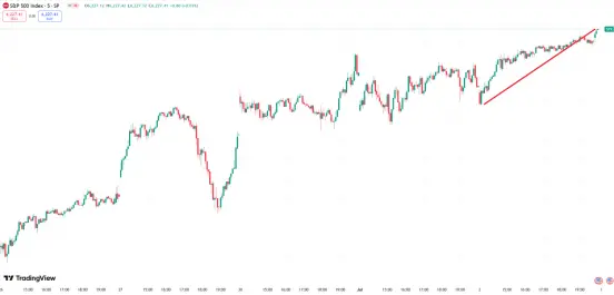 2025年7月3日,標普500指數收在6,227.42點,日漲幅0.47%,創歷史新高。截至目前,標普500已完成前兩個階段,短期均線持續上揚,顯示買盤力量增強。