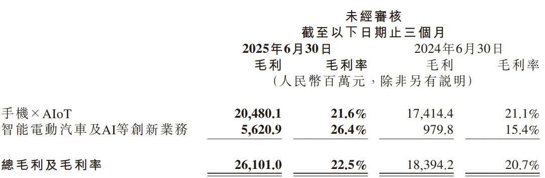 2025年Q2,小米汽車業務經營虧損從第一季的5億元收窄至3億元,改善幅度達40%,依當前趨勢,可望在2025年底或2026年初實現單季獲利。