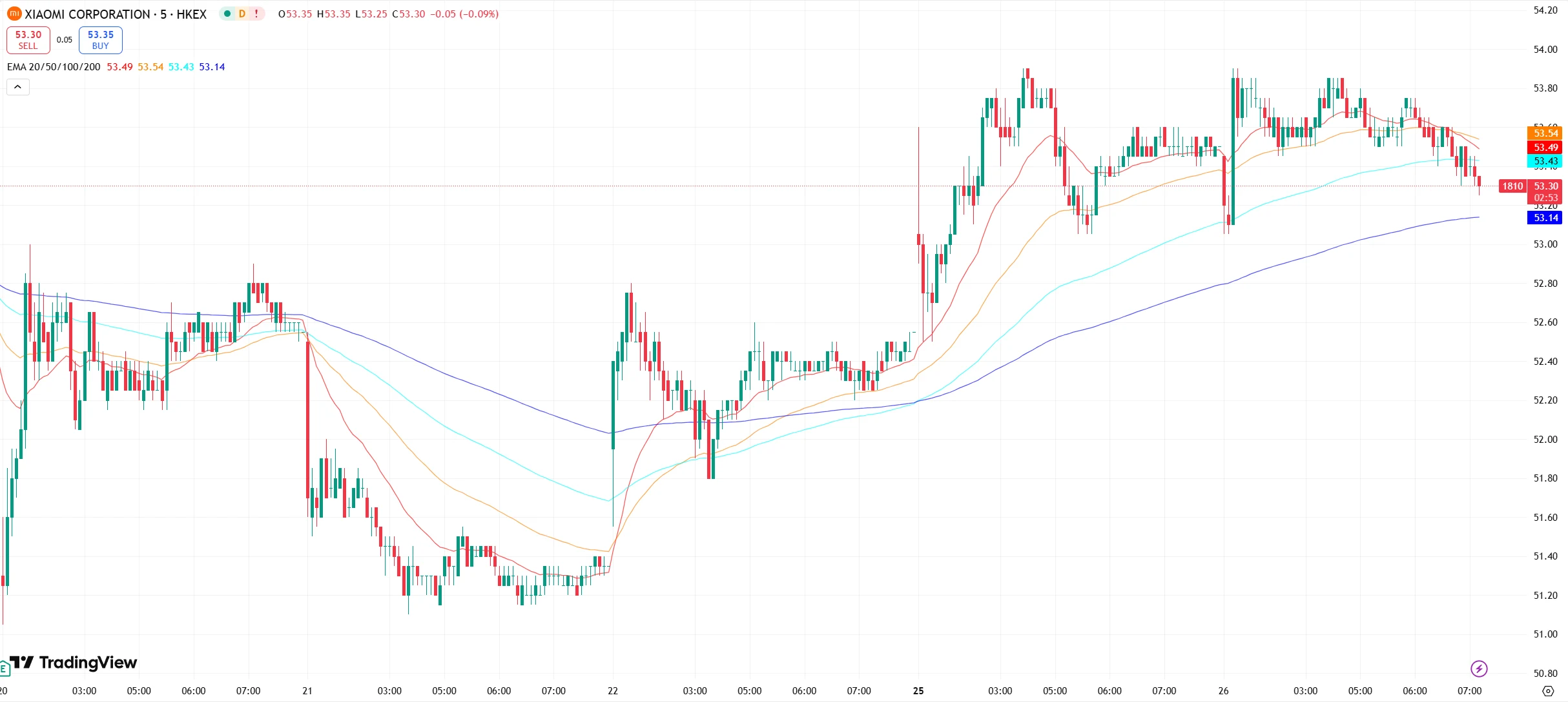 儘管業績表現強勁,財報發布隔日股價卻高開低走,收盤下跌1.23%至52.40港元。