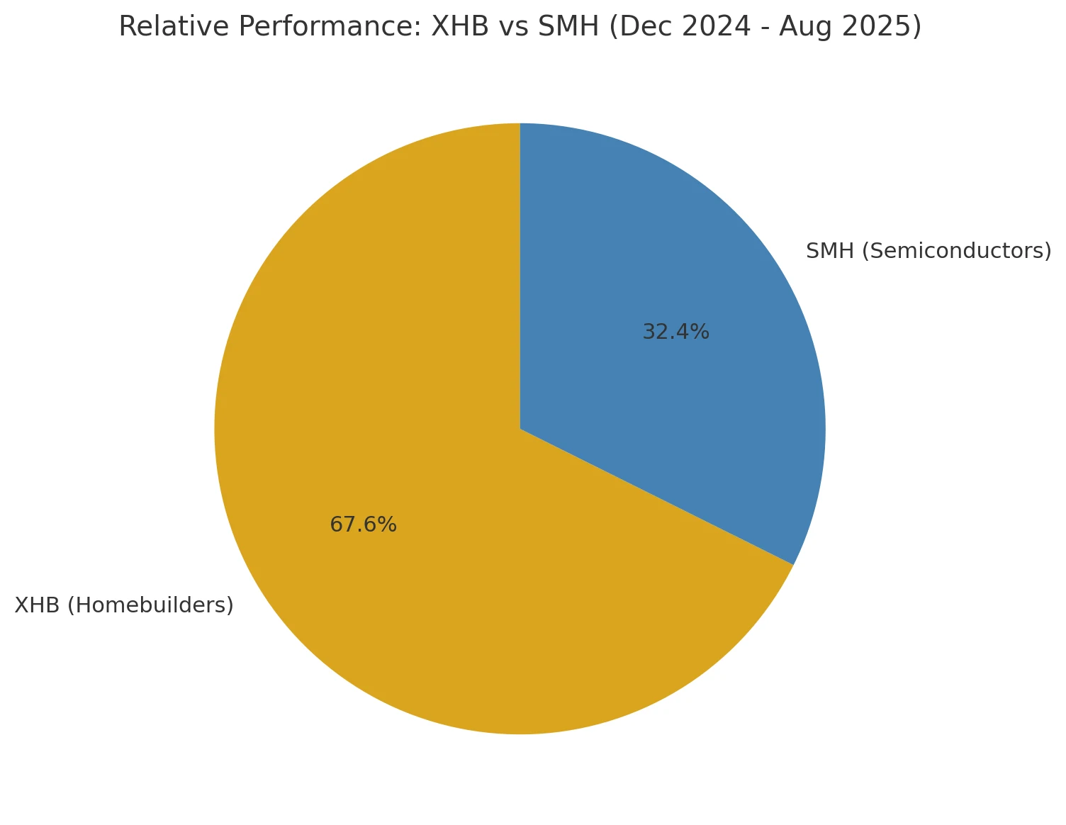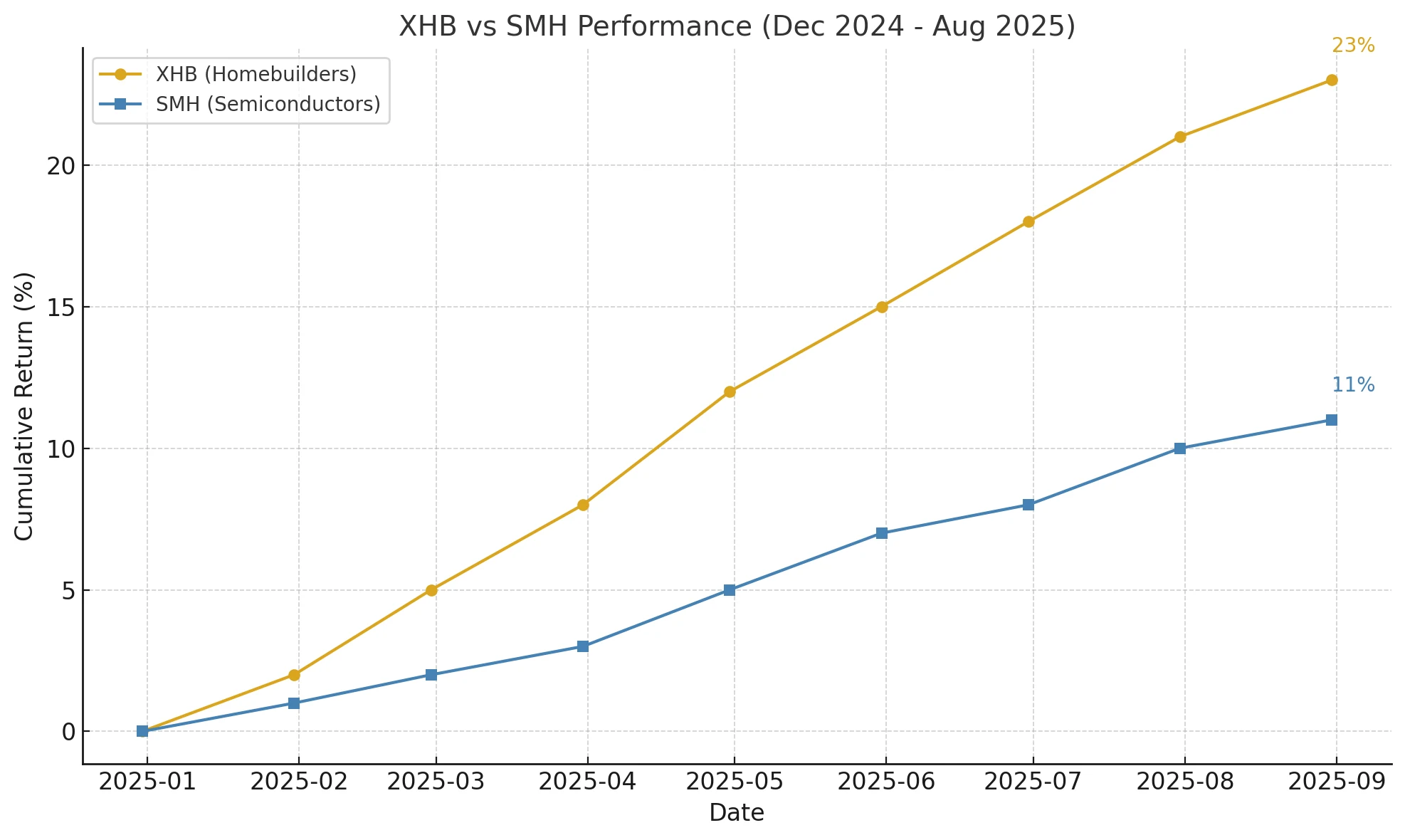 XHB(房屋建築商)更直接受益於利率下行和信貸環境寬鬆,而 SMH(半導體)對全球需求與資本開支週期敏感。不同宏觀情境下,兩者表現差異顯著;