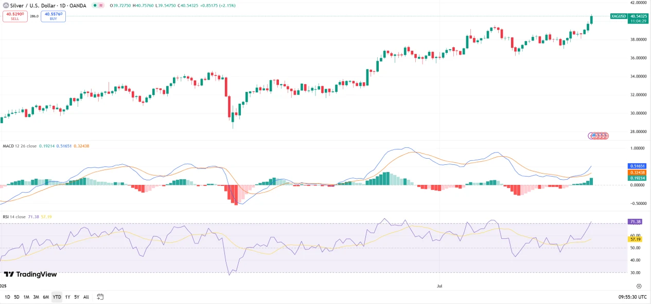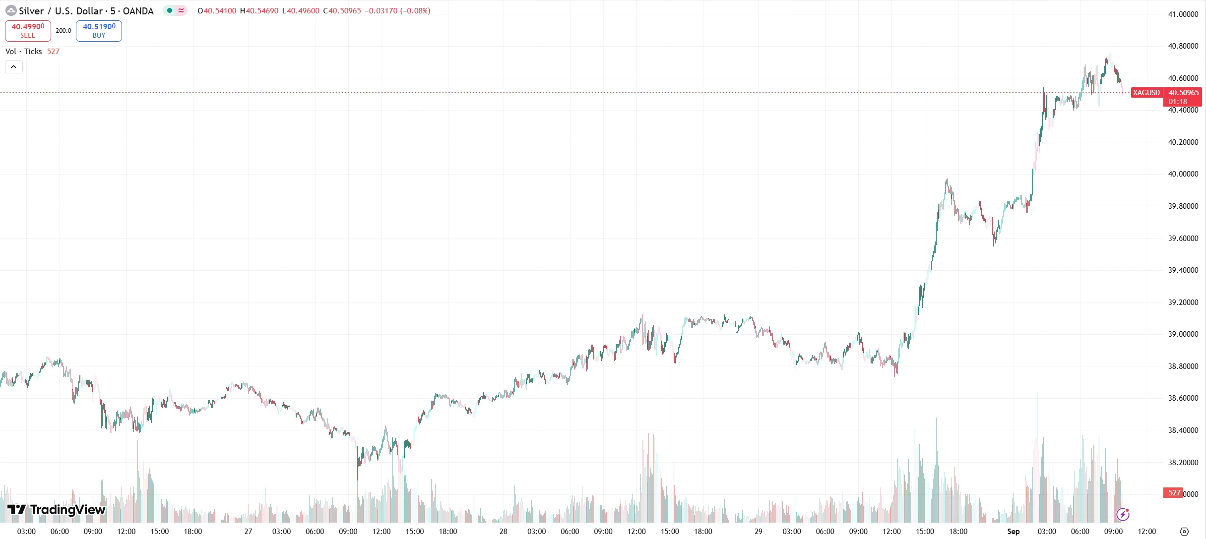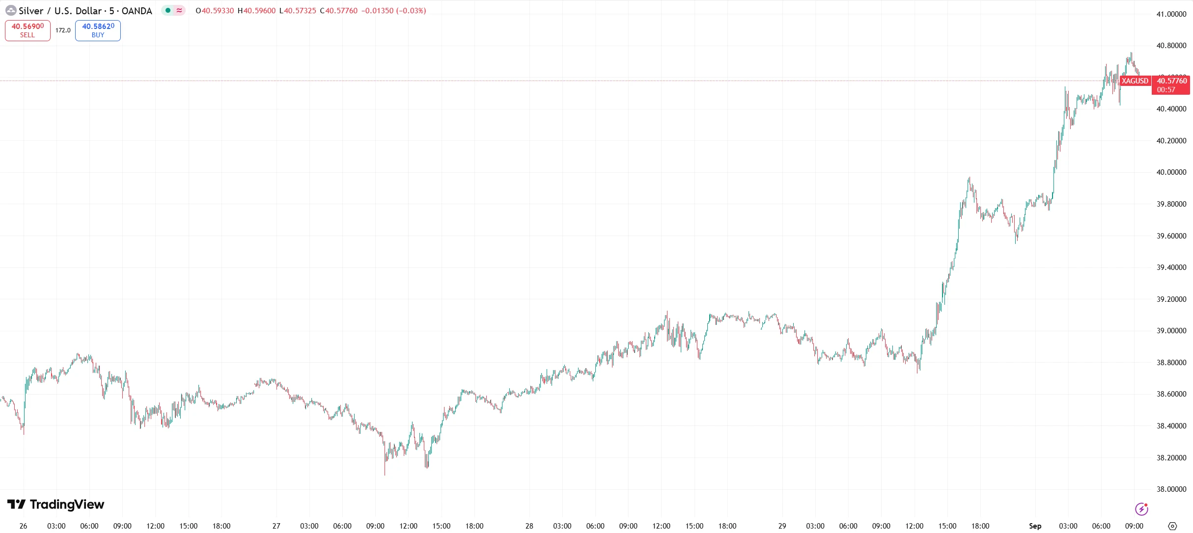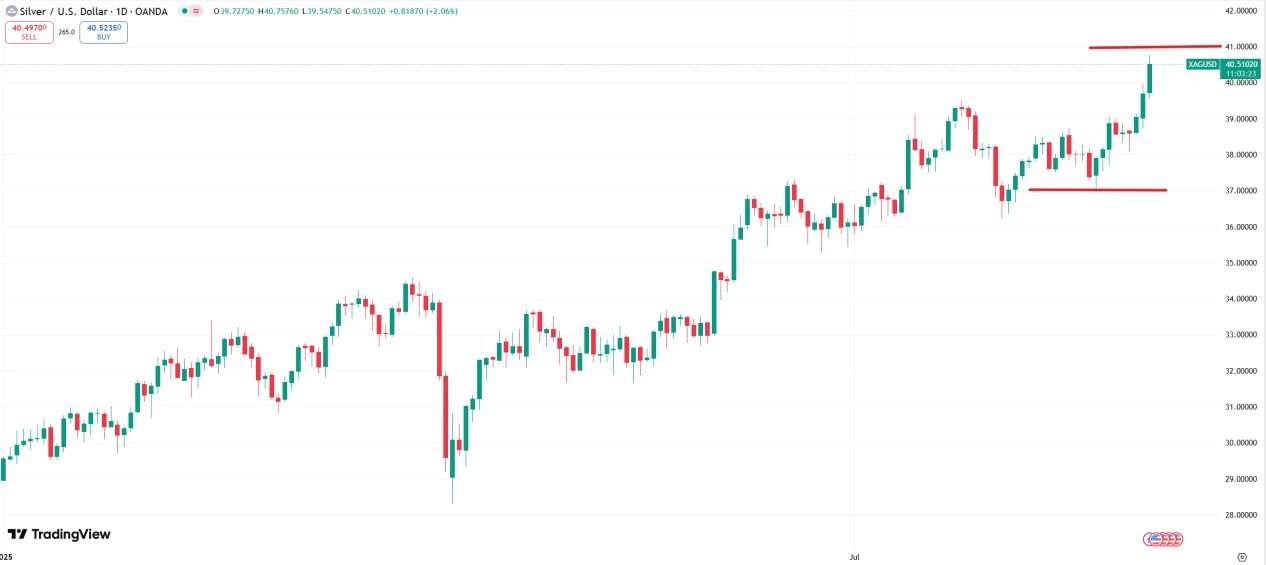 現貨白銀價格突破40美元/盎司關口,創2011年以來新高